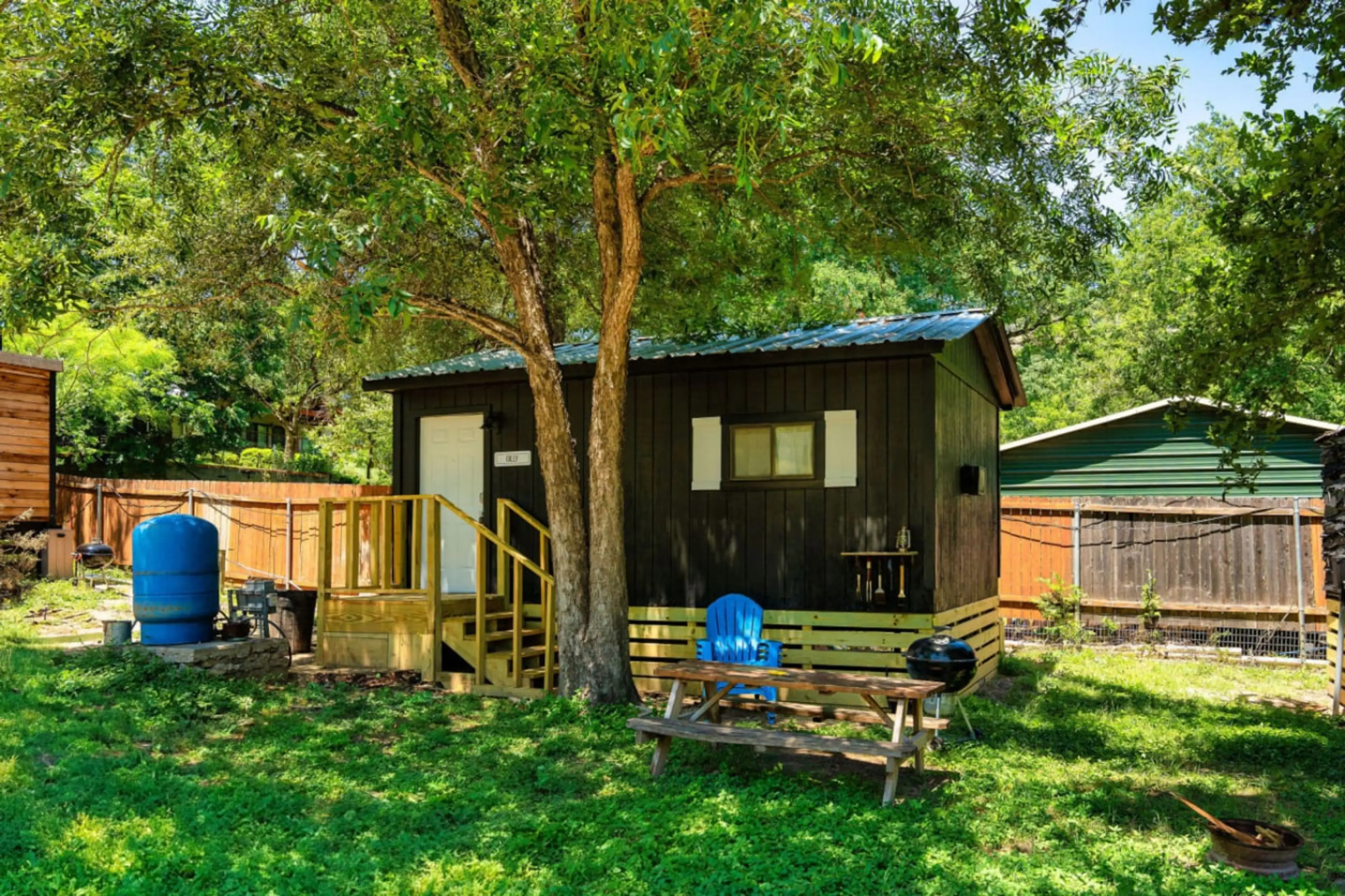 Primitive Cabin at Fernweh Riverfront on the Guadalupe River, Gilly is one of three cabins located on the property with private river access. Appointed with 2 queen size beds, your sleep should be comfortable in the fresh new linens and soft pillows. A communal restroom and showers are a short walk ...